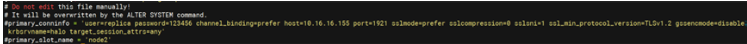 primary_conninfo = 'user=replica password=123456 channel_binding=prefer host=10.16.16.155 port=1921 sslmode=prefer sslcompression=0 sslsni=1 ssl_min_protocol_version=TLSv1.2 gssencmode=disable krbsrvname=halo target_session_attrs=any application_name=node2'
