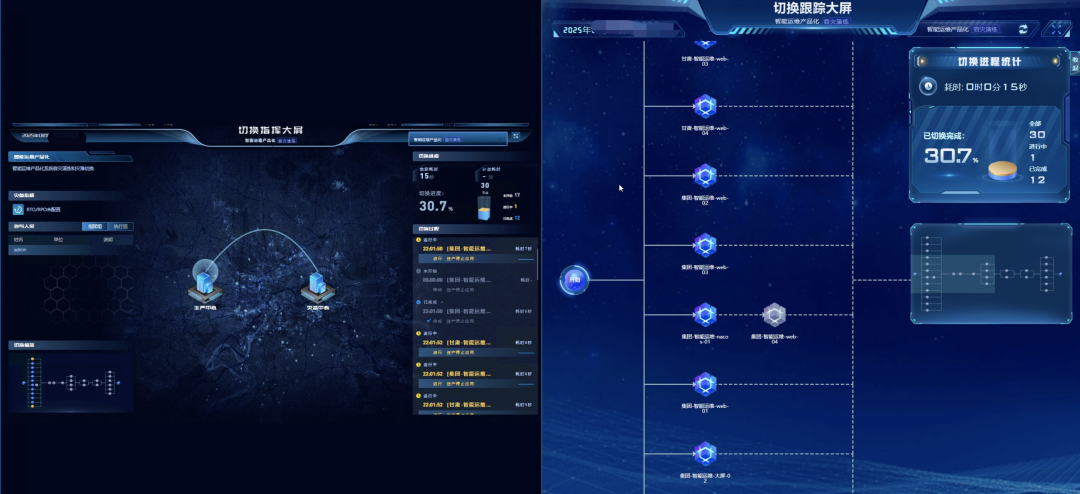 以智能生产运维系统从上海到异地灾备节点的容灾切换为例。演练于12月26日22:01:30开始,首先采用美创新一代 灾备一体化平台(DRCC)(点击了解)进行快速自动化预案评估,演练执行小组执行一键启动智能生产运维系统的主备切换,在充分保障备份任务完成和人工节点验证通过情况下,包括数据库、应用、NAS、中间件等各类资产节点均按照既定的演练预案完成切换,总耗时2分54秒。备端业务系统经过近1个小时的试运行后,成功验证备节点数据零丢失,容灾效果满足业务运行需求。