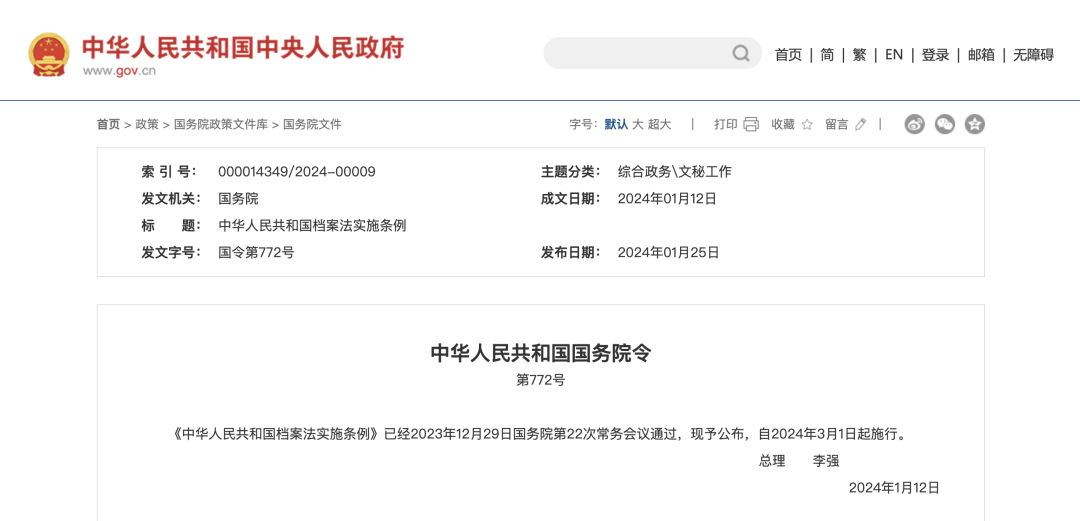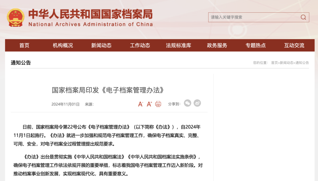 1.《档案法实施条例》新修订:电子档案安全再升级