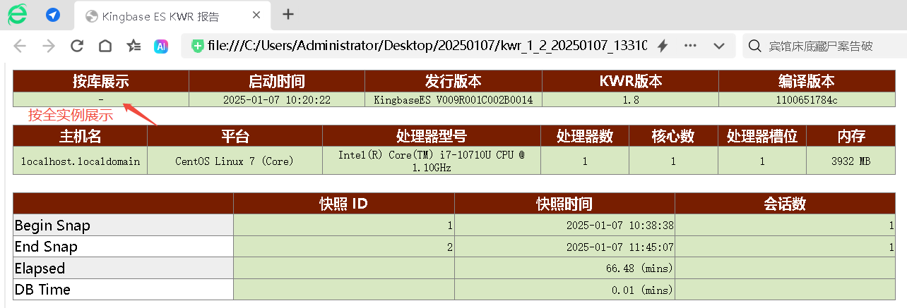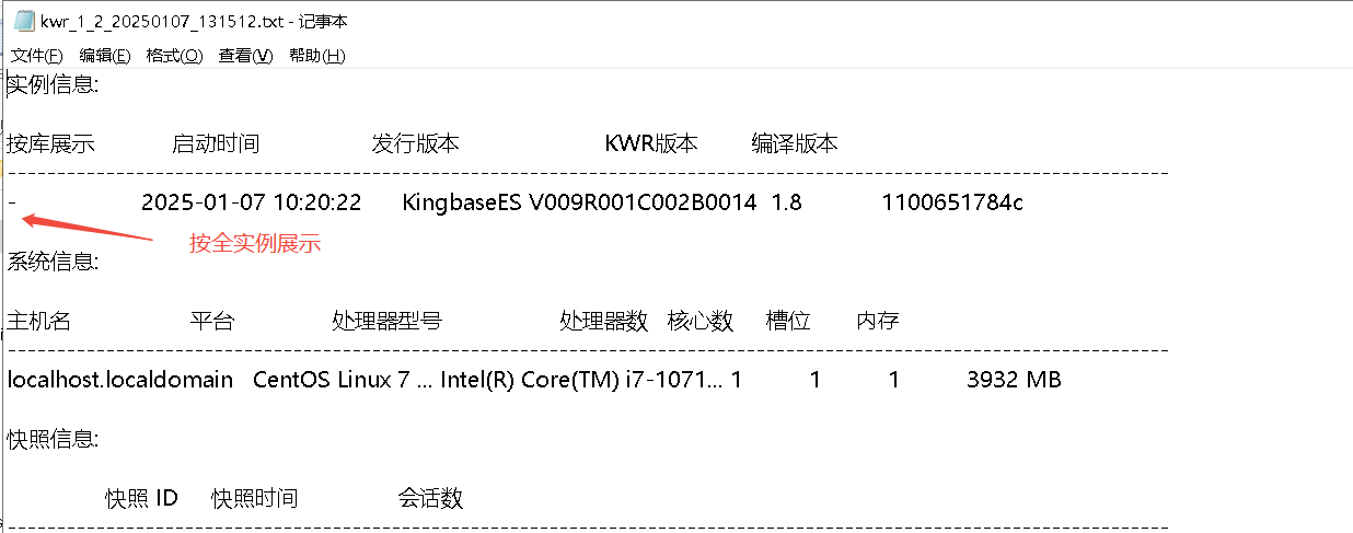 (1 row)生成全实例KWR报告