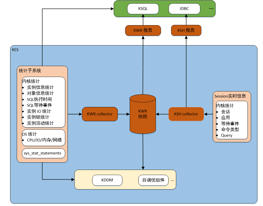 SYS_KWR是KingbaseES自动负载信息库(Kingbase Auto Workload Repertories)的简称,它通过周期性自动记录性能统计相关的快照,分析出KingbaseES的操作系统运行环境、数据库时间组成、等待事件和TOP SQL等性能指标,为数据库性能调优提供指导。