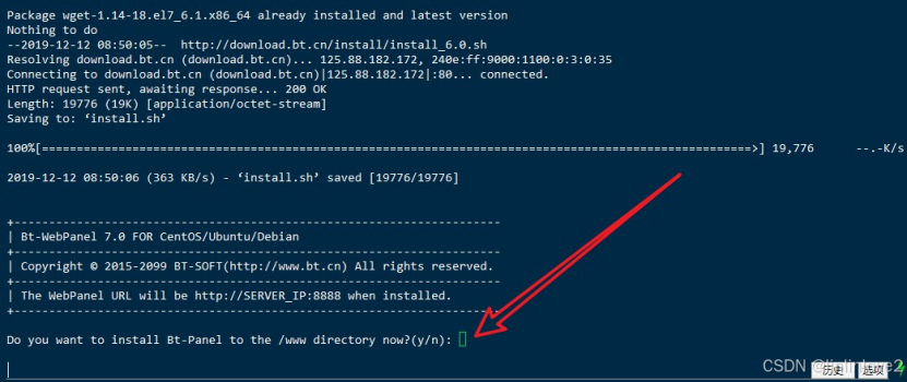 四、安装宝塔 CentOS 面板