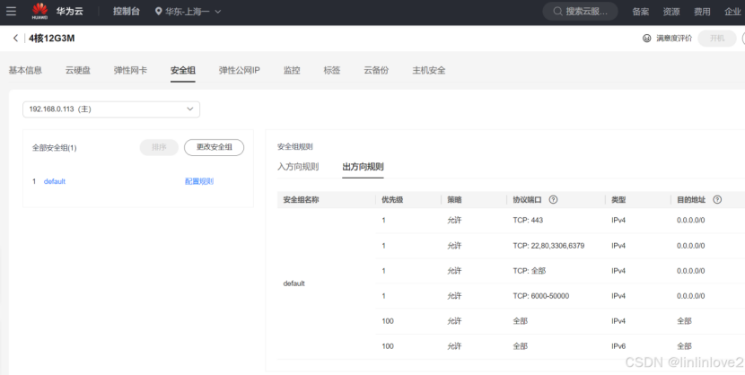 进入华为云的控制台,进行开放对应的安全端口:80、3306、6349、443、8888 等等