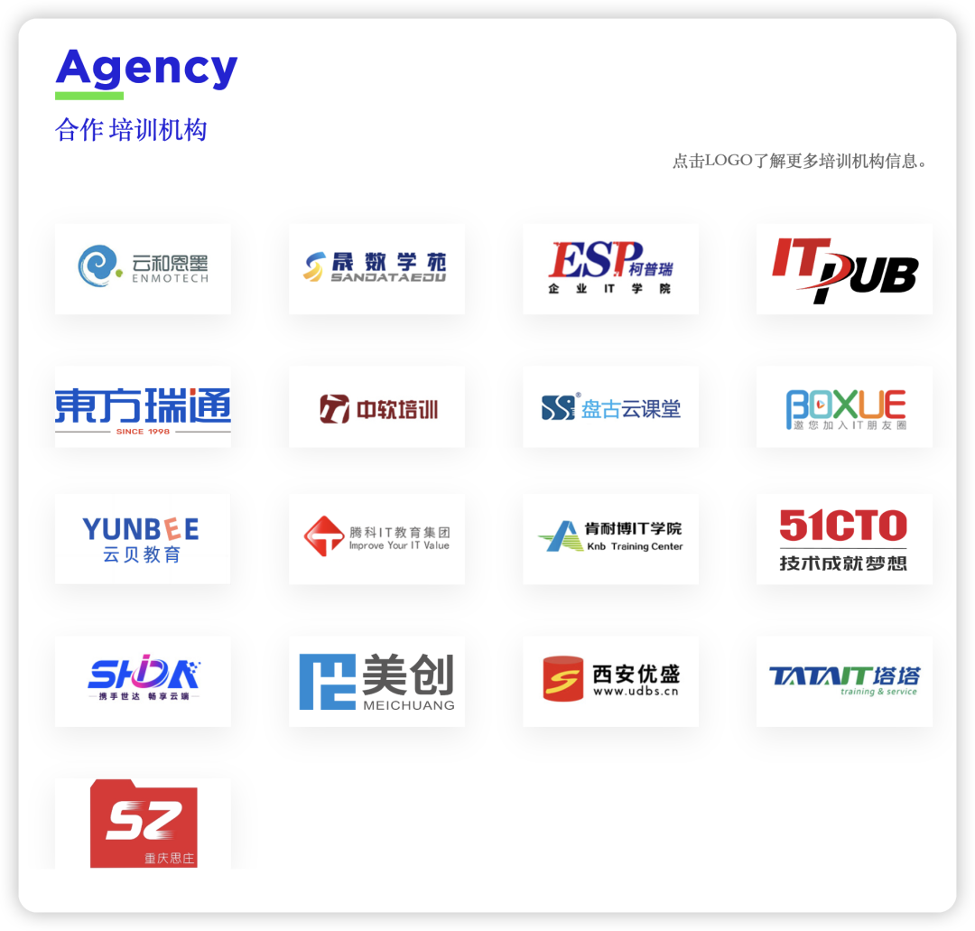 1、完整、科学的培训认证体系,已运营五年,技术内容持续迭代。