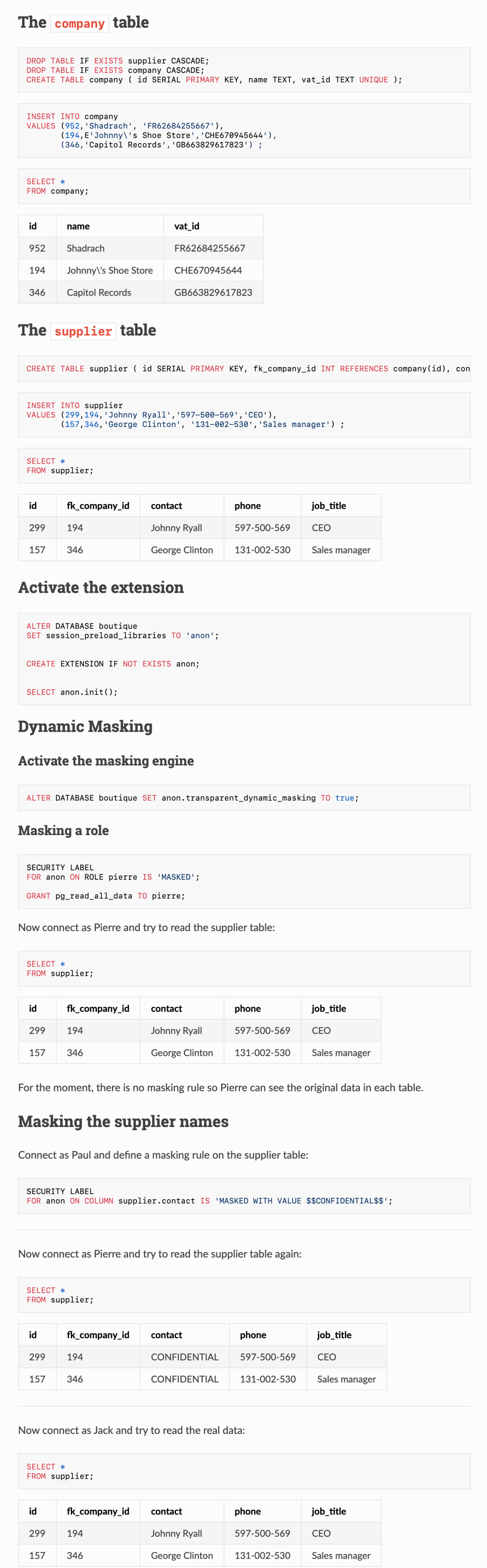 这个扩展的主要目标是从设计层面上实现匿名化。我们坚信,编写数据脱敏规则的人应该是开发应用程序的人员,因为他们对数据模型最为了解。因此,脱敏规则必须直接在数据库架构中实现。
