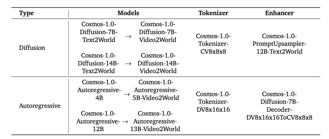 英伟达训练这个模型采取的是预训练后再微调的范式,其中将WFM分为预训练WFM和后训练WFM。为了构建预训练WFM,作者利用大规模的视频训练数据集,向模型展示多样化的视觉经验,使其成为一个通用模型。为了构建后训练WFM,使用从特定物理AI环境中收集的数据集对预训练WFM进行微调,从而得到针对特定物理AI设置的专用WFM。英伟达分别探索了两种可扩展的模型构造方法,一种基于Diffusion,一种基于自回归。Diffusion模型通过逐渐去除高斯噪声来生成视频,而自回归模型则是按照预设顺序逐片生成视频,且每一片都依赖于之前生成的内容。这两种方法将复杂的视频生成问题分解为更简单的子问题,使得问题更易于处理。