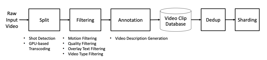 英伟达在长达75页的技术报告中,也专门详细描述了一下视频数据的处理,对于实际的视频生成业务,这一块是属于knowhow很多,但是又容易被一笔带过的内容。在现代以大规模数据驱动的模型训练中,数据的处理是决定模型效果的重要变量。推荐对这一部分感兴趣的读者阅读原文,大体流程是分割步骤将一个长视频划分为若干个镜头,并将其转录为视频片段。过滤步骤去除对世界基础模型构建价值较小的片段。标注步骤为每个片段添加视频描述。然后,这些片段被存储在一个视频片段数据库中。为了获得训练数据集,首先进行语义去重,然后根据分辨率和纵横比对视频片段进行分片处理。
