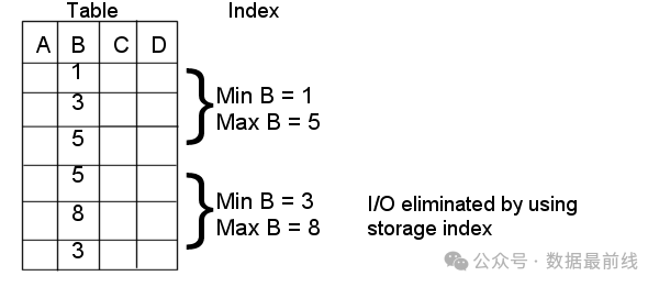 存储节点之所以具备快速的“智能”处理能力,还得益于存储索引特性。和传统架构下存储层对数据没有感知能力不同,Exadata的存储节点通过存储索引对所存储的数据进行索引,存储索引跟踪该存储服务器上每个表的存储区域的最小和最大列值,使得存储节点能够快速过滤出满足SQL查询要求的数据返回给计算节点。
