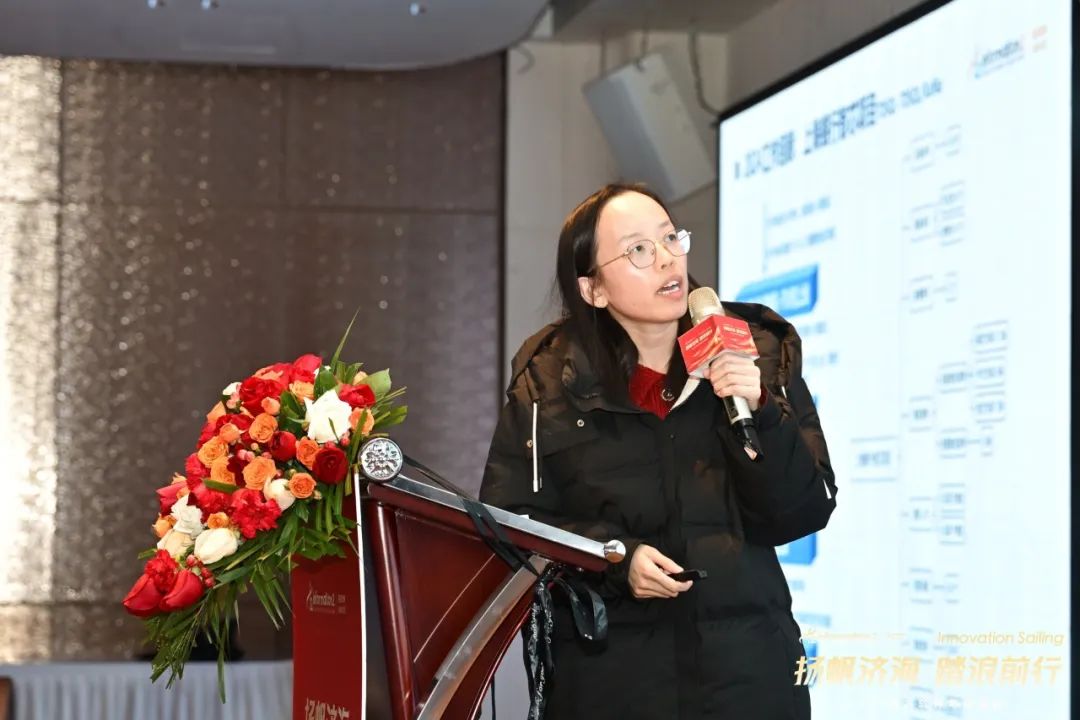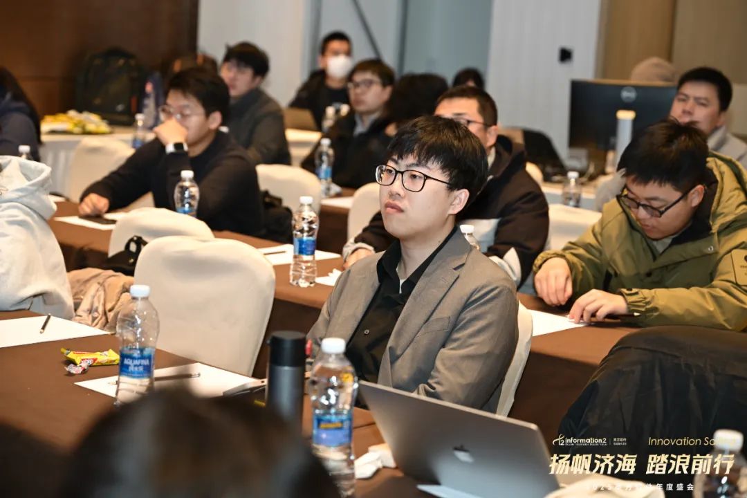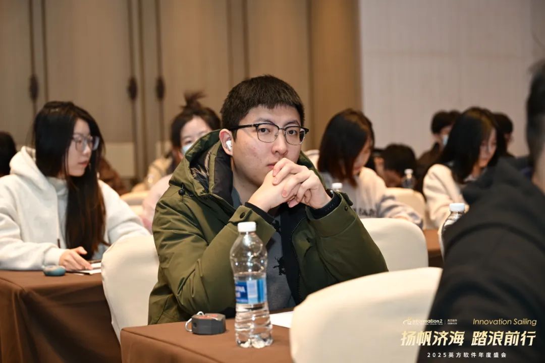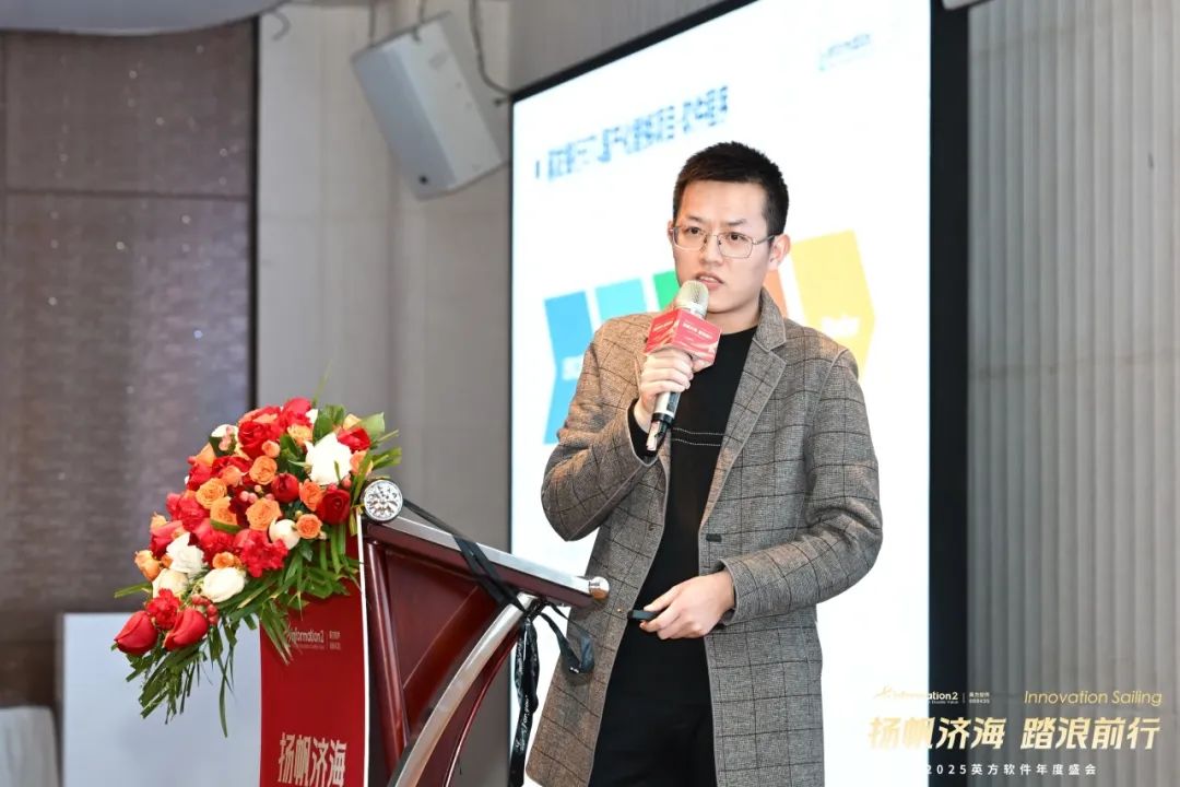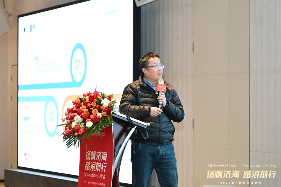 副总经理兼COO江俊的致辞中回顾了英方近年来携手并肩、共同成长的辉煌历程。从历年年会的主题中,可以清晰看到公司文化的发展与传承,每一次的相聚都凝聚着团队的力量,见证了英方人的坚韧与拼搏。她表示,2024年,英方在大客户、产品、技术、创新等多个领域取得了显著成就,这些成果离不开每一个团队的辛勤付出与不懈努力,是他们的专业精神推动了英方软件的稳健前行。