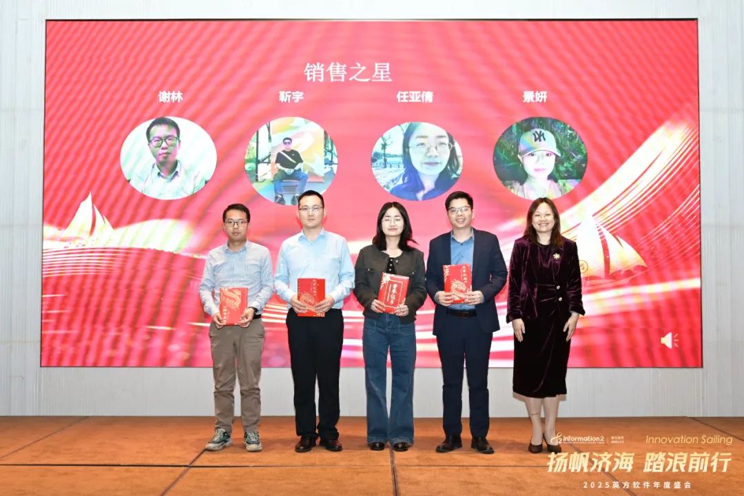 员工表彰环节,我们首先为荣获“优秀员工奖”(徐苗苗、刘丹、刘艳文、张炜、王誉梦)、“英方新人奖”(邓振宇、陈媛麒、刘韦、宗国祥、张宇鹏)及“销售之星奖”(谢林、靳宇、任亚倩、景妍)的同事们颁发荣誉。