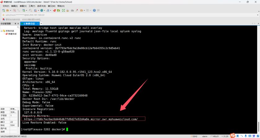 {"registry-mirrors": [ "https://fd0cfec0ac0d446db7fd9d27e92d4a8e.mirror.swr.myhuaweicloud.com" ]}
