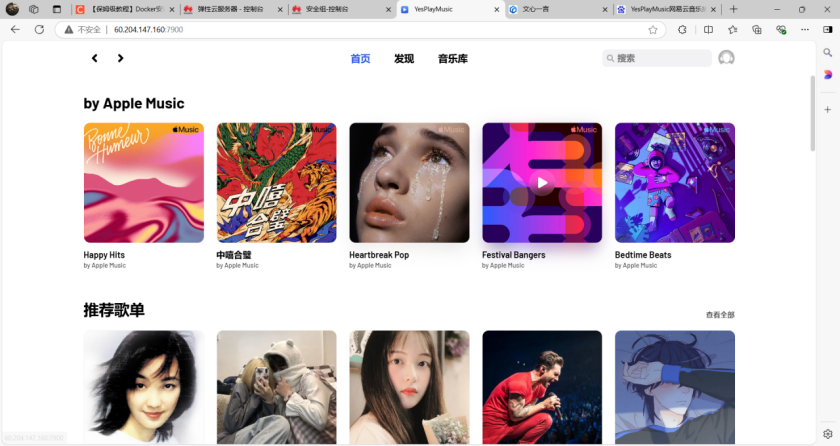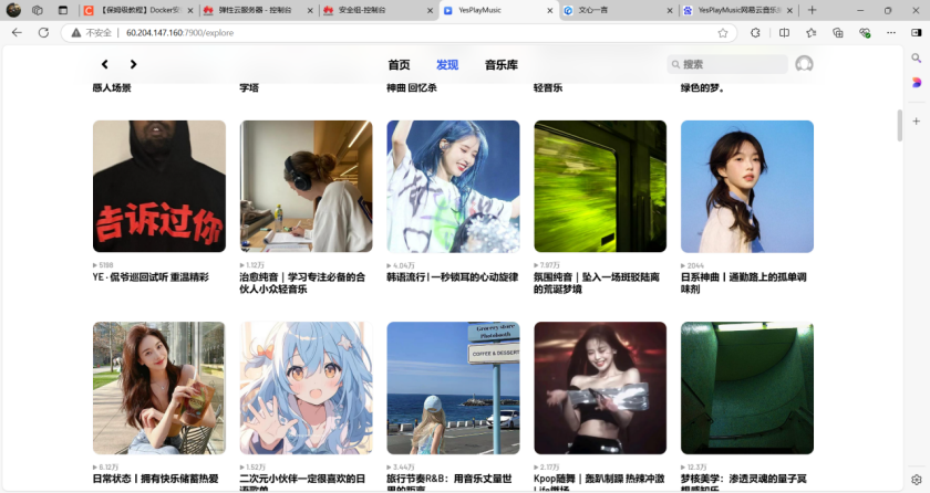 • 如下显示 Docker 集成搭建 YesPlayMusic 网易云音乐播放器就搭建完成了,可以登录自己的网易云账号,实现在自己的服务器上面听歌啦