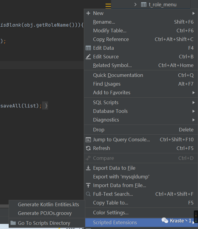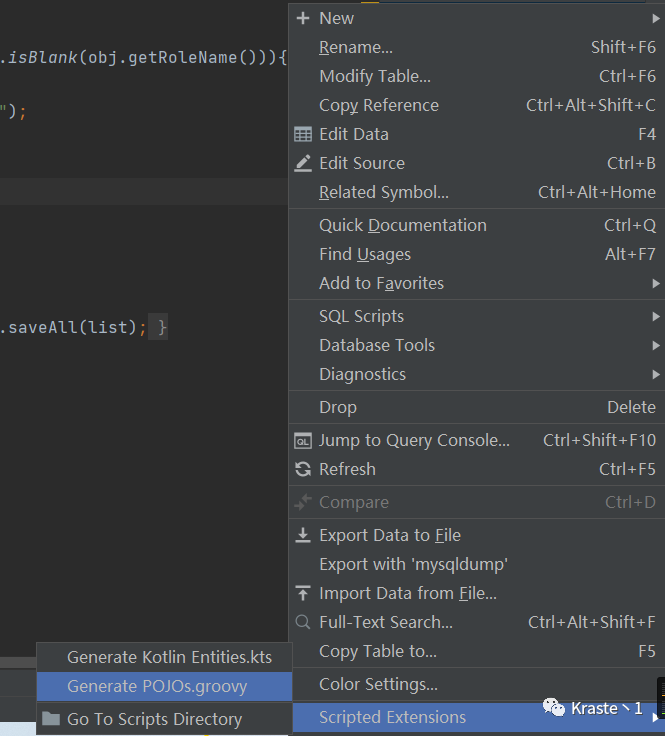 3.选择GO To Scriptis Directory 复制本文中的代码 根据需求修改模板 粘贴在Generate POJOs.groovy中。