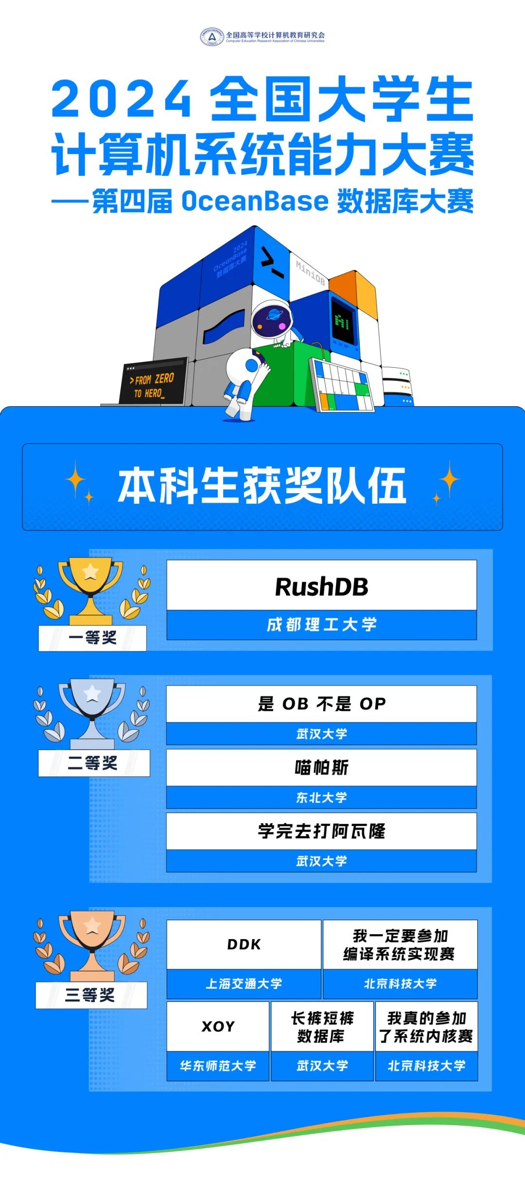 1 月 12 日,2024 全国大学生计算机系统能力大赛暨第四届 OceanBase 数据库大赛决赛在北京圆满落幕。