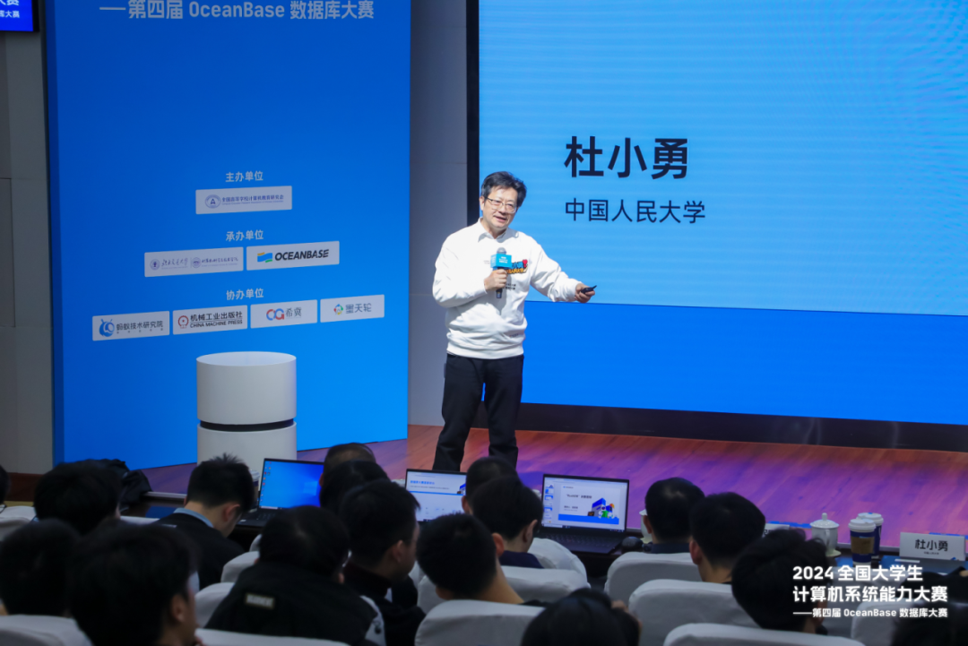 为了激发学生们对数据库的热情,颁奖典礼上增设了两场《爱上数据库》主题公开课。中国人民大学教授、博导,教育部数据工程与知识工程重点实验室主任杜小勇和 OceanBase 创始人兼首席科学家阳振坤讲述了各自的成长故事,分享了一代数据库技术人的坚持与梦想。