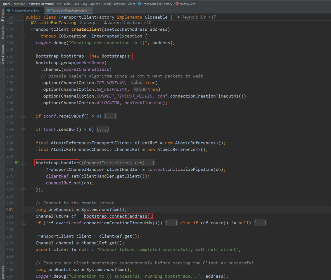 •Spark版本:3.2.3•Server: org.apache.spark.network.server.TransportServer.init•Client: org.apache.spark.network.client.TransportClientFactory.createClient