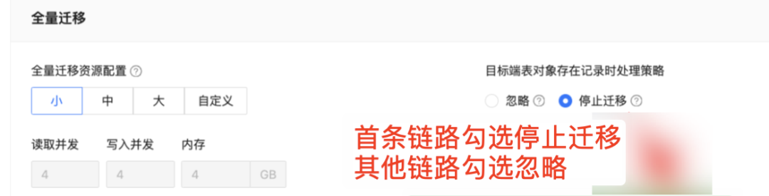 注意:数据冲突时,迁移工具的策略可能会存在忽略(