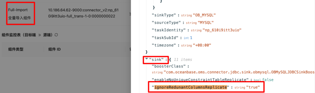 全量迁移设置:设置参数 sink.ignoreRedunantColumnsReplicate=true