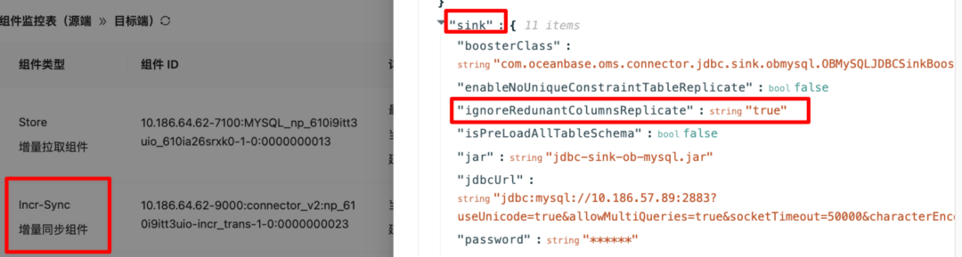 增量同步设置:设置参数 sink.ignoreRedunantColumnsReplicate=true