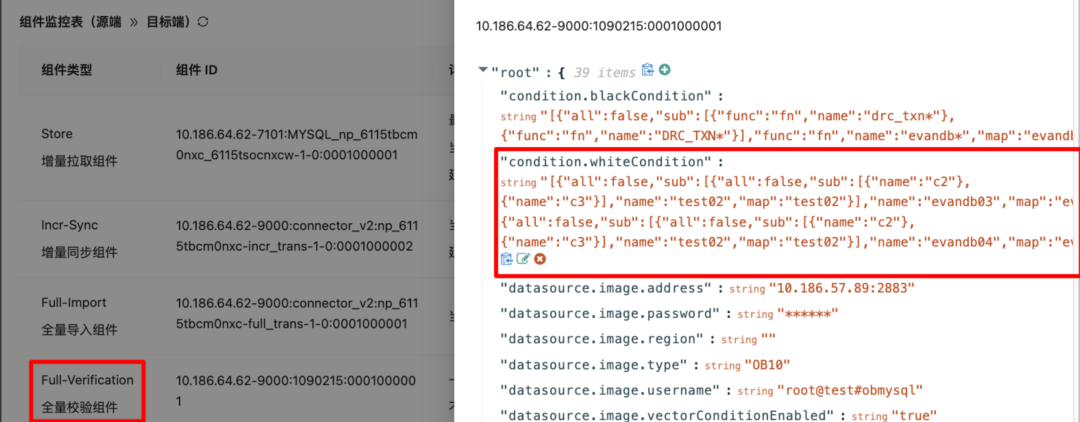 全量校验设置 :更改全量校验组件的 condition.whiteCondition
