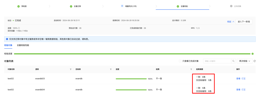 需判断表结构改造之后迁移工具能否进行数据校验。
