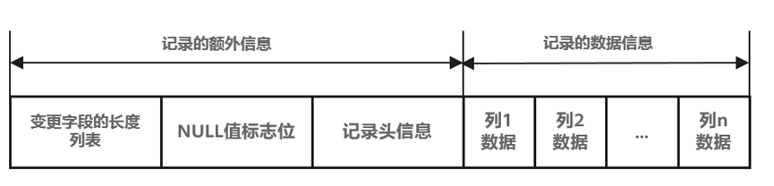 在存储引擎层Compact行格式数据,如图1所示,对于VARCHAR等这种变长的数据类型,系统不仅需要存储该字段的实际数据,还需要额外存储该数据的长度信息(即占用的字节数)。