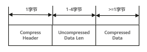 它包含Compress Header(压缩头)、Uncompressed Data Len(未压缩前的字段长度)和Compressed Data(压缩数据),作用如下: