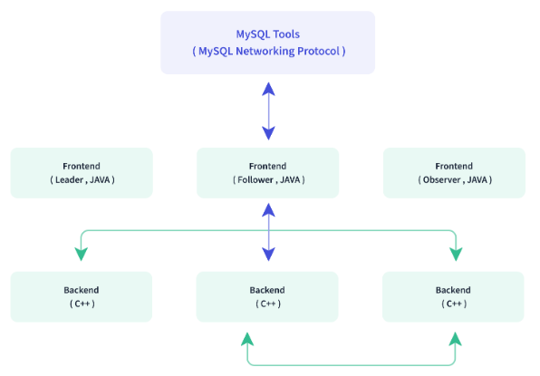 - Frontend(FE)和 Backend(BE)这两类进程都是可以横向扩展的,单集群可以支持到数百台机器,数十 PB 的存储容量。并且这两类进程通过一致性协议来保证服务的高可用和数据的高可靠。这种高度集成的架构设计极大的降低了一款分布式系统的运维成本