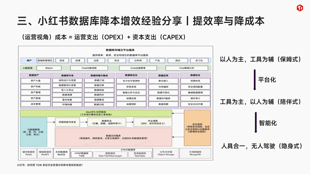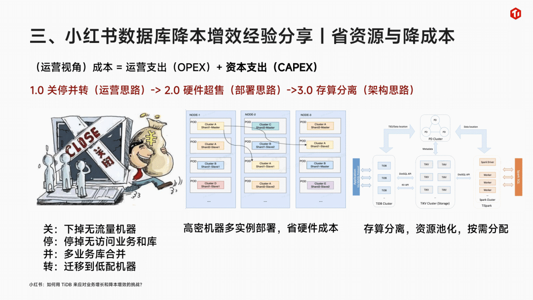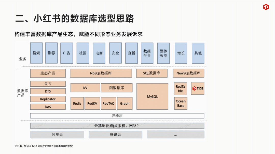 此外,在经济下行的大环境下,市场竞争从增量拓展转向存量厮杀,降本成为企业的战略优选事项。小红书需要在保证业务稳定运行的前提下,降低数据库的运营成本和资本支出,这对数据库技术和管理策略提出了更高的要求。