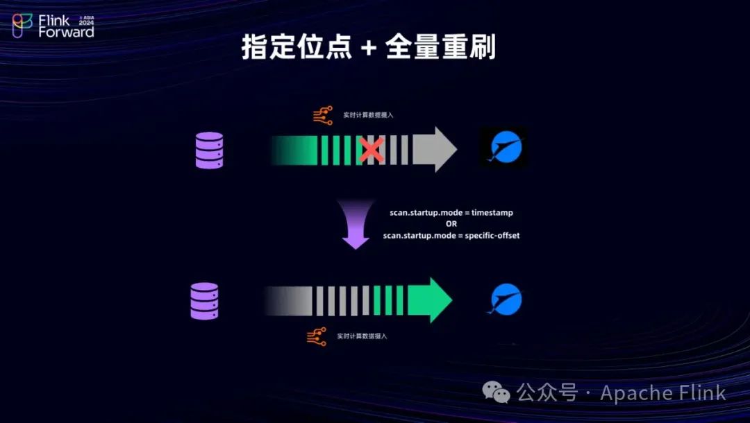 在作业同步过程中,如果因版本兼容问题导致解析 Binlog 时遇到错误,且无法从 Savepoint 停止的位点继续恢复启动,以往可能需要完全无状态地重启作业,进行全增量同步。在支持指定位点启动后,我们可以在启动作业时指定到停止作业的位点,从而跳过那些无法恢复的错误。通过这种方式,我们可以选择重刷数据以修正错误,而无需进行全量同步。
