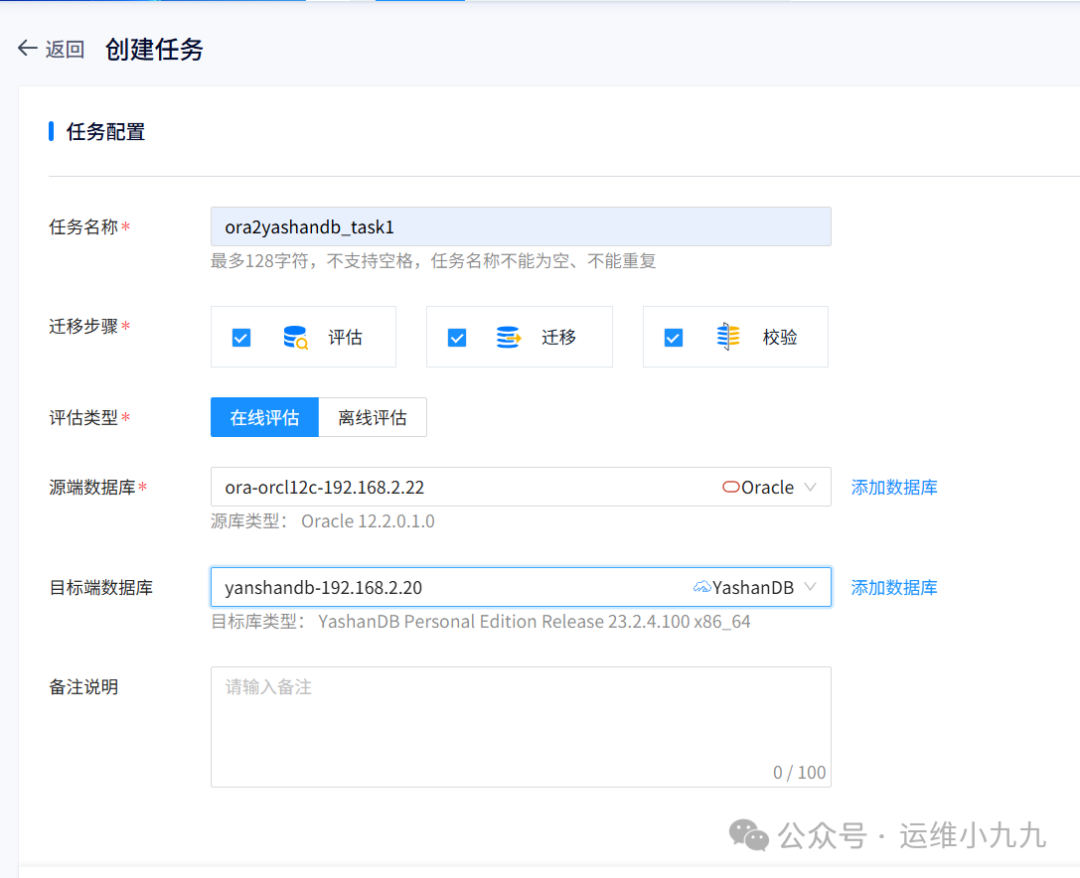 创建的迁移任务,里面包含了评估、迁移、校验,是核心部分,选择好源端和目标端。