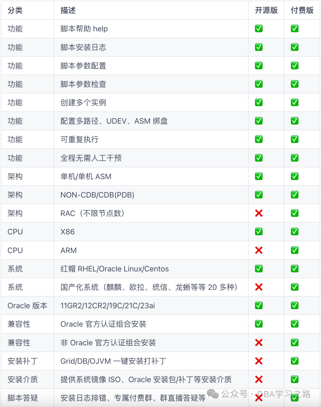 📢注意:开源版本脚本仅适配 Oracle 官方认证列表的系统组合。
