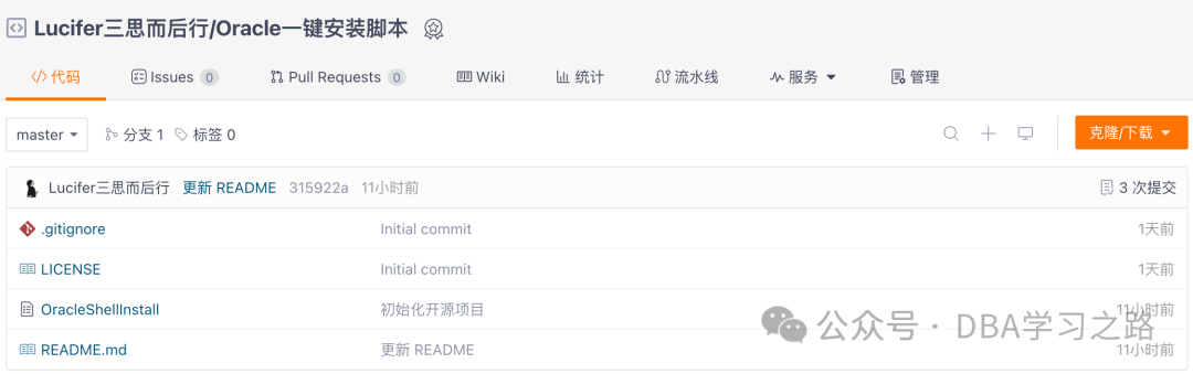 Oracle 一键安装脚本是托管于 Gitee 代码平台(避免大家无法访问 Github 的问题):