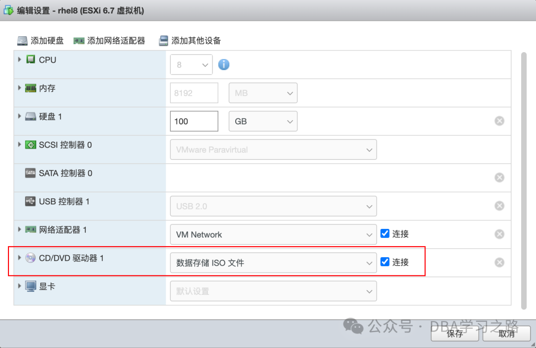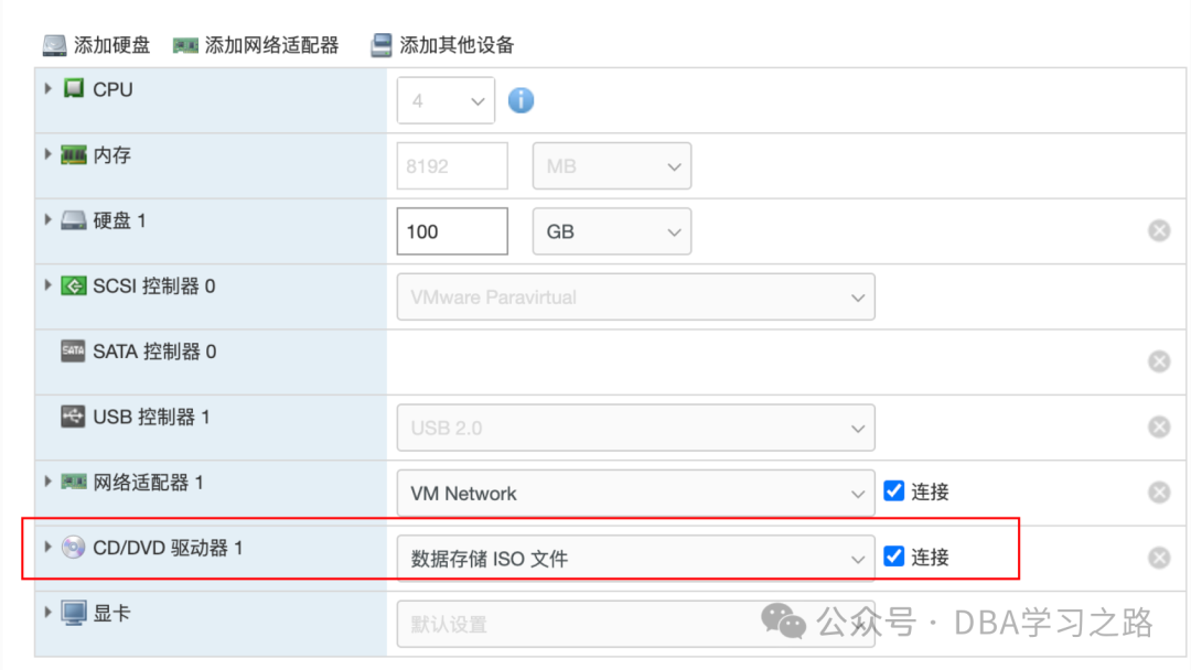 手动挂载系统 ISO 镜像(我这里使用的是 ESXI 虚拟化平台主机):