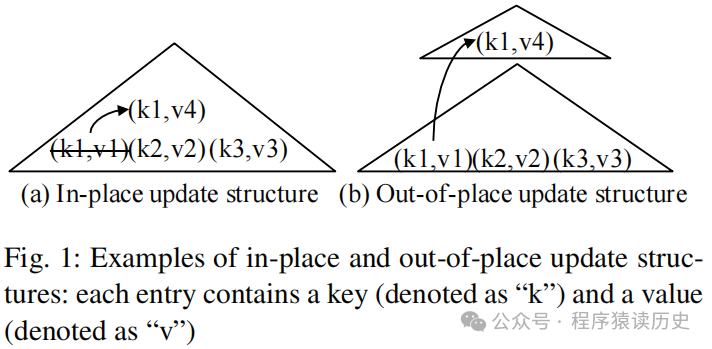 ,即更新数据时不直接修改原记录。比如把 <k1,v1> 改成 <k1,v4>,是用<k1,v4> 另外存储在新的空间,并给结合 version 标志为 k1 最新的值。这样写 k1 时,就不会产生随机 I/O 要事先找到 k1再更新,而是直接利用顺序 I/O 将新记录追加加上去。这相比于本地更新(in-place updates)