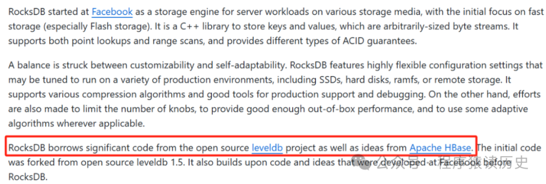 另外一个小插曲,RocksDB 虽然是Meta公司推出,但Meta毫不避讳的承认它是站在Google开源的Leveldb、Apache Hbase 巨人肩膀上演变来的。对比国内公司,大多害怕自家产品被说成是基于某某而来,总是强调自己是纯自研,甚至发明出“根自研”等词语。希望有朝一日,国产数据库们能自信的说出:我们的产品是基于/借鉴某某数据库而来。