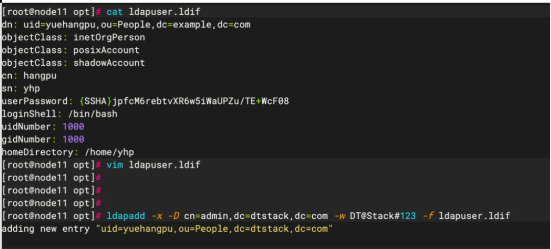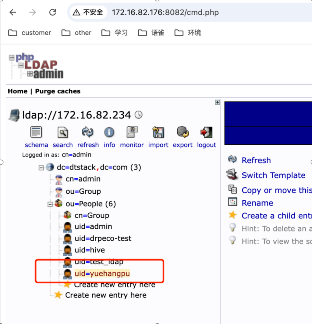 上面我们已经可以看到,在ldap的可视化页面可以看到新增用户。