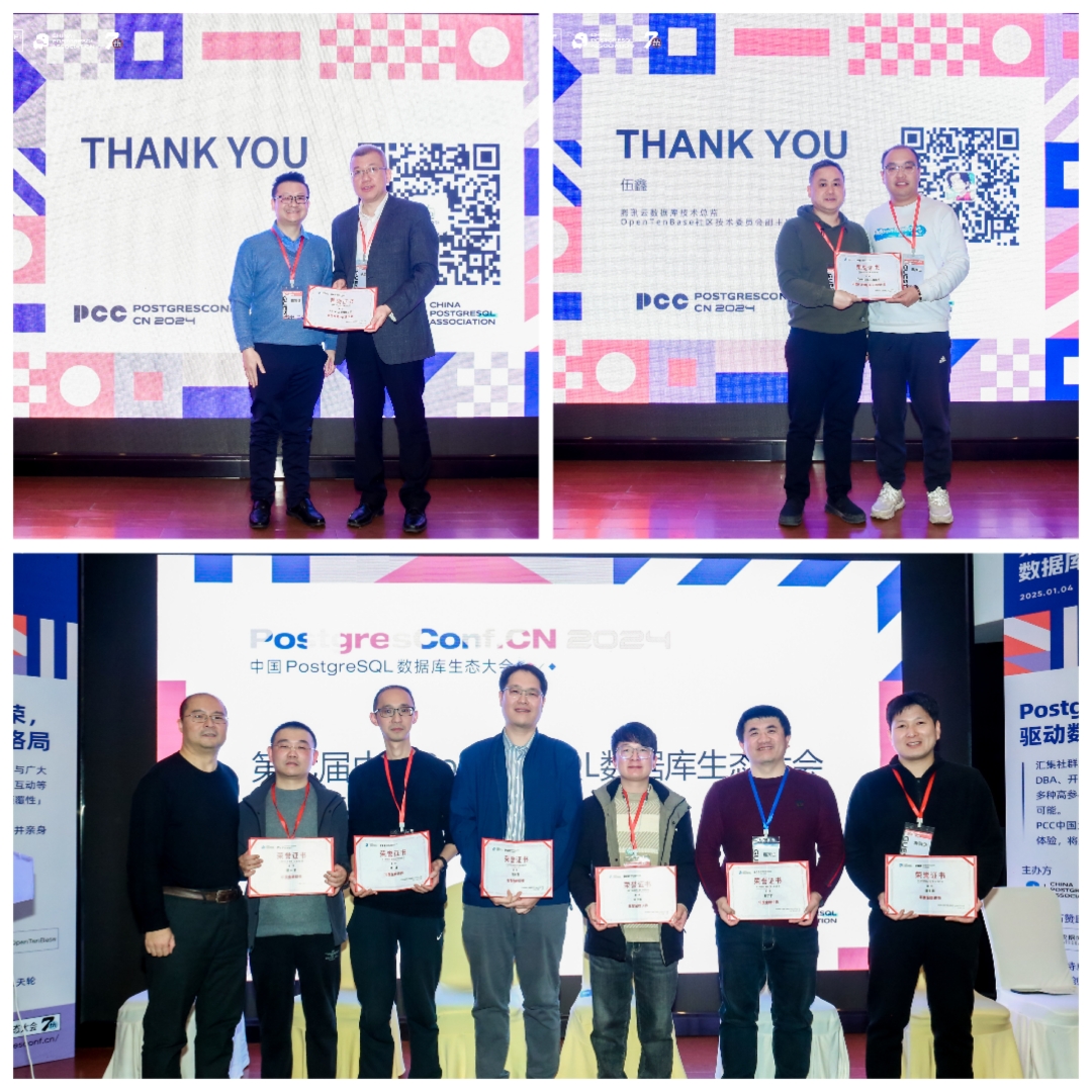 在会中颁发了2024年度“中国PostgreSQL技术评选颁奖典礼”,旨在表彰过去一年中为中国PostgreSQL社区的发展做出杰出贡献的个人和团队,鼓励创新与卓越,促进数据库技术的交流与进步。