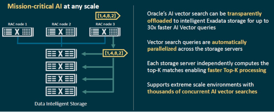 有趣的是,根据Oracle Exadata、数据库云服务和多云产品的副总裁Ashish Ray的说法,Exadata X11M机器的价格与2023年6月发布的前一代X10M相同。在Exadata X11M机器中看不到更快的以太网RDMA网络或来自Nvidia或AMD的GPU。Ray表示,在分布式数据库/存储服务器架构中,降低以太网网络的延迟远比将互连端口的带宽提升至200 Gb/s、400 Gb/s或800 Gb/s更为重要。Exadata X8M和X9M平台使用了Intel的Optane 3D XPoint内存作为存储服务器中的快速缓存层,但随着几年前Intel停产该产品,Oracle创建了XRMEM内存缓存,它从存储服务器的主要内存中划分出一部分,并通过RDMA链接到数据库服务器。在X10M机器上,从数据库服务器到存储服务器上的XRMEM的链接延迟为17微秒。通过调整X11M堆栈中的微代码和网络栈,Oracle已经能够将这个时间减少到14微秒,这使得8 KB I/O进入数据库服务器的速度提高了21%,从而提升整体吞吐量。这一切都不需要更昂贵的网络设备。尽管GPU已被用于加速列式数据处理——例如Heavy.AI(原MapD和OmniSci)、Kinetica和SQream等——但Ray表示,到目前为止,对于Oracle客户在其数据库上运行的OLTP和分析工作负载而言,这种做法并不是必要的。Ray解释说:“Exadata平台上以及其Oracle数据库中发生的很多AI处理都与AI矢量处理有关。换句话说,进行矢量搜索,创建矢量或多维索引,以及最短距离Top K算法。Exadata并不涉足大型语言模型(LLM)训练业务,这正是GPU特别相关的领域。因此你会看到我们的云端GenAI服务中有GPU。关于Exadata,因为主要用于结构化的私有业务数据,所以矢量处理发生在我们为数据库服务器和存储服务器使用的超快速AMD处理器上。”当AMD在其Epyc处理器中添加矢量核心时,可以肯定的是,Oracle工程师将会调整算法来利用这些新特性。但是,除非有令人信服的计算理由,否则我们不期望会在Exadata数据库机器中添加GPU或其他类型的加速器。这种情况未来可能会发生,尤其是在AI功能被加入到Oracle数据库管理系统中时。