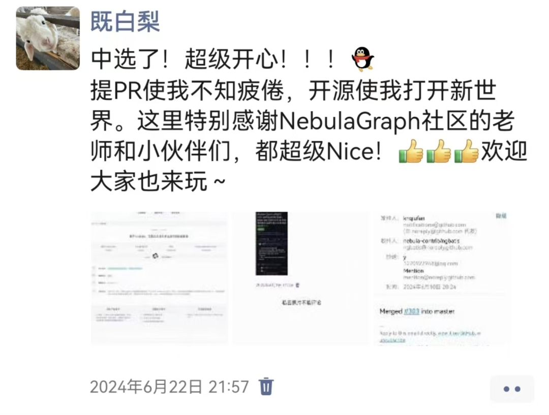 从方案设计到细节优化,每一次讨论都让我获益匪浅,也让我认识到技术背后的严谨与深度。同时,也要感谢开源之夏的平台和 NebulaGraph 社区的支持与鼓励。正是社区的开放与包容,让我有机会深入其中并取得成长。