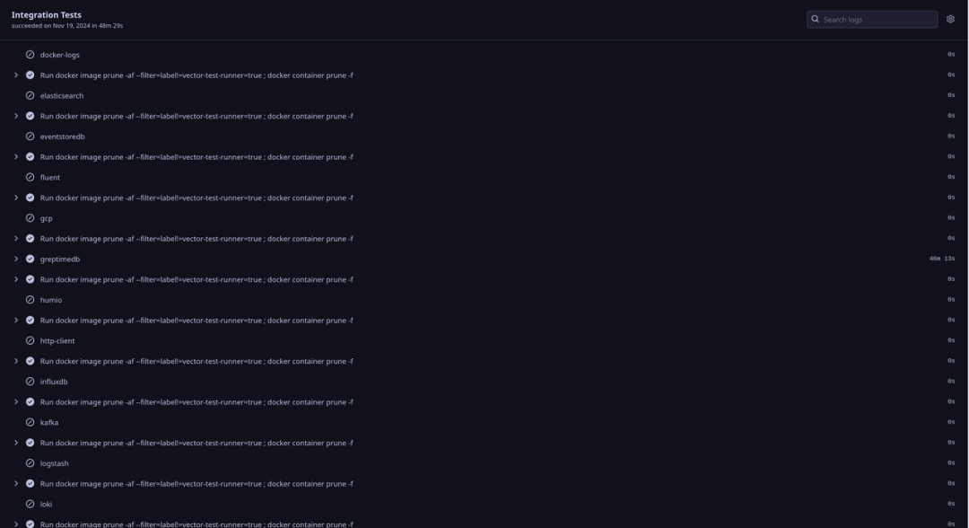 Vector 使用 Rust 编写,在运行时非常高效,但开发过程中的编译速度却让人一言难尽。尤其是 Vector 作为一个集成各种外部应用的综合体,依赖众多,其编译速度和编译时的资源消耗是我见过的 Rust 项目中唯一一个能比肩 GreptimeDB 的(🐶 保命)。