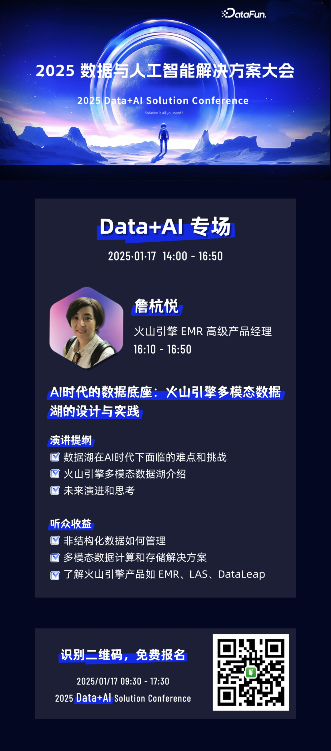 参与活动,还可以领取火山引擎ChatBI、多模态数据湖方案,并抢先试用产品!