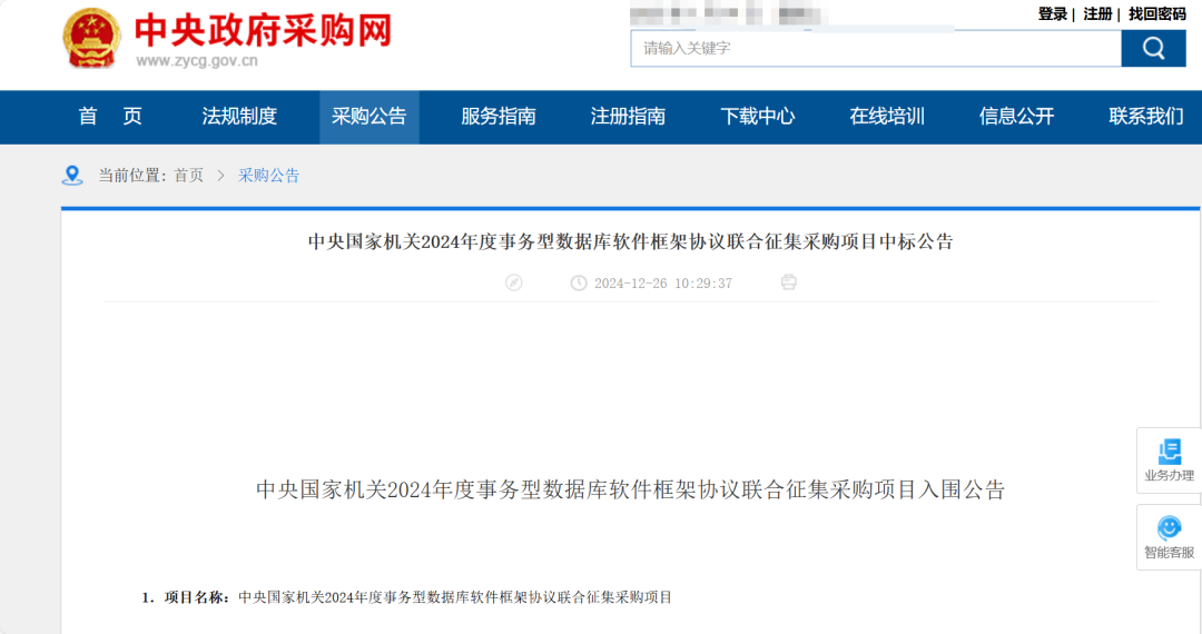 中央国家机关2024年度事务型数据库软件框架协议联合征集采购