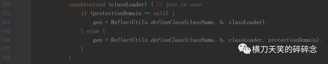 这里对WebappClassLoader加锁了,然后调用到的ReflectUtils.defineClass方法还调用了: