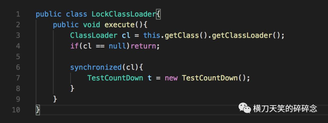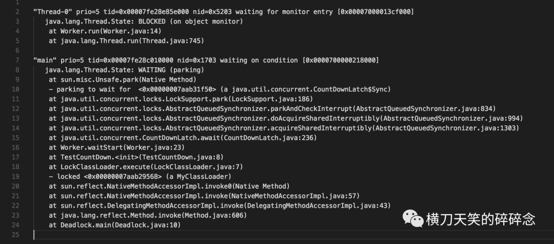 这个栈,基本上和文章开头的栈类似:19行,我们在MyClassLoader上加锁了。