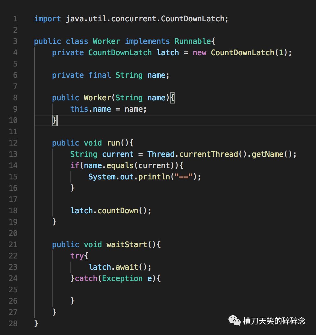 简单的介绍下几个类:Deadlock就是一个main方法,LockClassLoader里会对class loader加锁,而TestCountDown和Worker两个类就类似HashWheelTimer里的那个CountDownLatch逻辑。