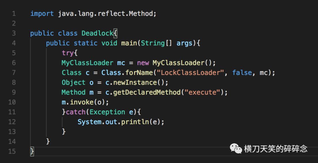所以要复现这个例子,我们还要写个简单的ClassLoader。然后我们将Deadlock的代码改写为: