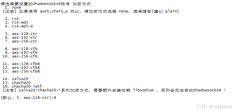 7.4:加密方式,选择 aes-128-cfb 就可以