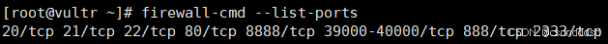 如果没有出现 2333/tcp 的字样,那么该端口还没有开放。使用以下命令开放相应端口并重启:
