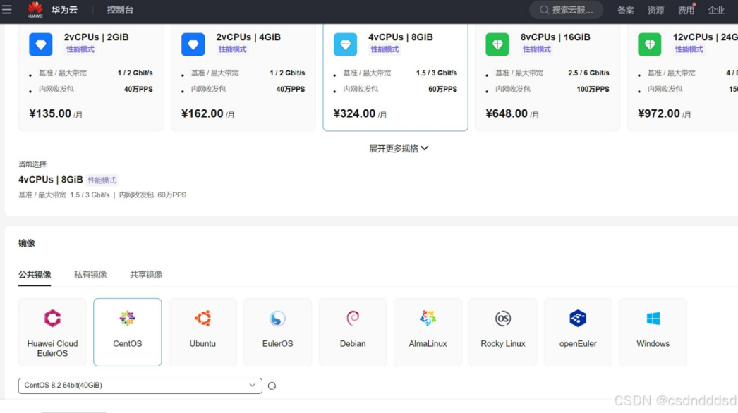 可以从公共镜像中直接选取,如 EulerOS 等。